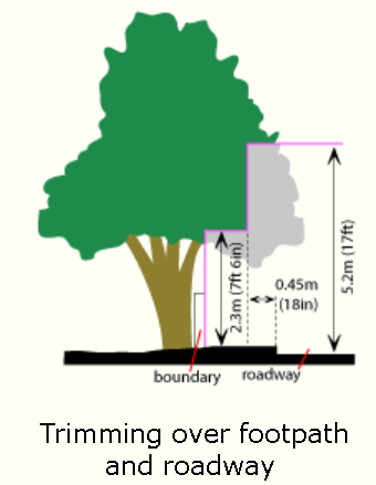Although the Highways Act 1980 doesn’t specify any actual measurements for overhanging vegetation, the requirement should be met by: